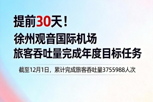截至11月19日,徐州机场完成货邮吞吐量16025吨,较去年同期增长19%,突破通航以来年度峰值纪录,提前42天完成年度生产目标。今年9月、10月,单月货邮吞吐量连续两个月创历史新高。2025年,在徐州机场旅客吞…